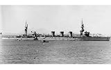 | 「軽巡洋艦 多摩」です。 「多摩(たま)」は、軽巡洋艦「球磨型」の2番艦で、艦名は多摩川に因んで命名されました。 1918年8月10日八四艦隊計画(後の八八艦隊計画)の一隻として三菱造船長崎造船所(現・三菱重工長崎造船所)で起工され、1920年2月10日に進水、1921年1月29日に竣工しました。 その後、1922年に第一艦隊に編入、1937年に第三艦隊に編入、1941年第五艦隊に編入されました。 1944年10月25日エンガノ岬沖海戦で空襲により大破、その後アメリカ海軍の潜水艦「ジャラオ」 (USS Jallao, SS-368) の雷撃により撃沈されてしまいました。