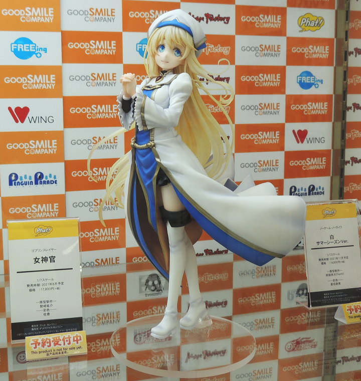 | ゴブリンスレイヤー 女神官 TVアニメ「ゴブリンスレイヤー」に登場する、主人公ゴブリンスレイヤーのパーティメンバー「女神官」(おんなしんかん)のフィギュアで、原作小説第1巻の表紙イラストがモチーフとなっていて、頭にかぶる帽子は脱着可能な仕様となっているようです。 発売元:ファット・カンパニー(Phat!) 販売元:グッドスマイルカンパニー 1/7スケール塗装済み完成品 専用台座付属 全高約240mm(帽子含む) 価格:¥17,800円(税別) 発売:2021年8月予定 |