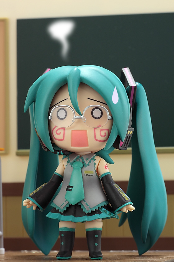 初音ミク: 「長門さん、メガネをお借りしていいんですか♪」 長門有希: 「どうぞ…」 |