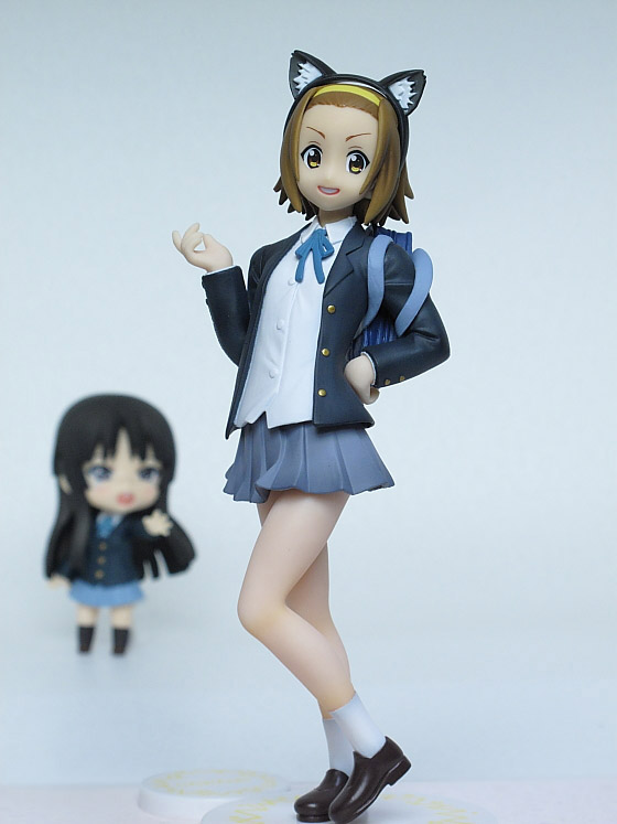 | 『D賞 田井中律』です♪ 台座は各キャラごとに印刷が異なっていて、律ちゃんの付属品は鞄と猫耳、および差し替え用の手が付属しています。 |