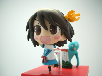 ハルヒを前方右側やや上方から見たものです。 ここまで見たきたように、自分にとってはこのフィギュアはハルヒの可愛さをよく表現したものだと感じています。 ハルヒ好きな方々にとってはオススメの一品といっても良いと思います。 |