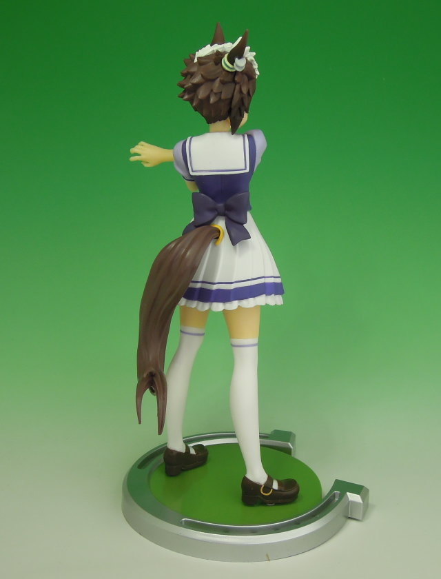| ウマ娘 プリティーダービー メジロライアン フィギュア(バンプレスト) 2023年1月24日(火)からアミューズメントの景品として順次登場した、「ウマ娘 プリティーダービー メジロライアン フィギュア」(バンプレスト)です。 公式イラストにも採用されているポーズのトレセン学園制服姿でのフィギュア化で、蹄鉄形の特製台座が付属しています。 本物のメジロライアン(Mejiro Ryan)は、1989年7月9日(デビュー/3歳新馬戦 函館競馬場)から1992年3月22日(日経賞 GU/最終出場競馬)まで現役だった牡馬(オス)で、主な勝ち鞍(かちくら/優勝したレース)は、宝塚記念(GT/1991年)、弥生賞(GU/1990年)、京都新聞杯(GU/1990年)、日経賞(GU/1992年)などとなっていて、生涯成績は19戦7勝、獲得賞金は4億9204万400円となっています。 「メジロライアン」は、1990年の中央競馬クラシック三冠競走(皐月賞・東京優駿・菊花賞)では、1964年のウメノチカラ以来となる3戦3敗、3着以内を記録し、1991年には、「平成三強」(オグリキャップ、スーパークリーク、イナリワン)に代わる「新三強」をメジロマックイーン、ホワイトストーンとともに形成して春古馬路線を争い、宝塚記念(GT)を優勝したそうです。 引退後の1993年からは種牡馬となり、GT競走5勝を挙げたメジロドーベル、天皇賞(春)優勝馬のメジロブライトらの父となったそうです。 (以上のデータはWikipedia参照) 登場時期 2023年1月24日(火) 全1種 約18cm 2024.02.24現在 |