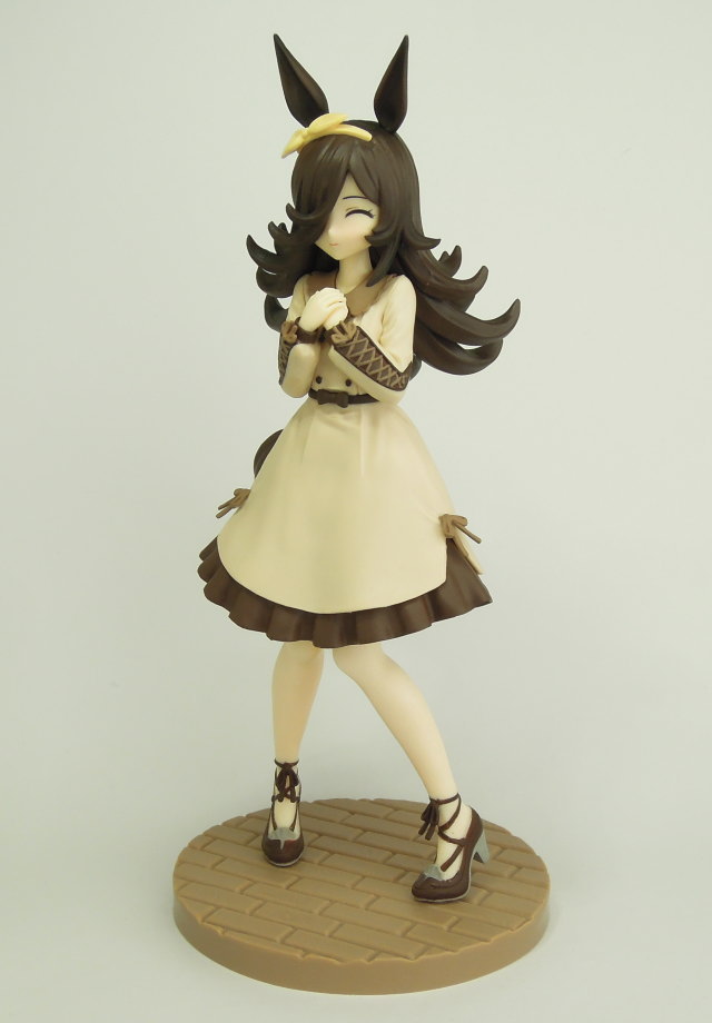 | ウマ娘 プリティーダービー ライスシャワー フィギュア 私服ver. B(笑顔) バンプレスト 2023年4月14日(金)からアミューズメントの景品として順次登場した、「ウマ娘 プリティーダービー ライスシャワー フィギュア 私服ver. B(笑顔)」(バンプレスト)です。 私服姿でのフィギュア化で、上の写真の目を閉じた笑顔の「B(笑顔)」と、目を開いた通常顔の「A(通常)」の全2種となっています。 本物のライスシャワー(Rice Shower)は、1991年8月10日(デビュー戦/3歳新馬 新潟競馬場)から1995年6月4日(宝塚記念 GT/最終出場競馬)まで現役だった牡馬(オス)で、主な勝ち鞍(かちくら/優勝したレース)は、菊花賞(GT/1992年)、天皇賞[春](GT/1993年・1995年)、日経賞(GU/1993年)などとなっていて、生涯成績は25戦6勝、獲得賞金は7億2949万7200円となっています。 「ライスシャワー」は、菊花賞では「ミホノブルボン」のクラシック三冠制覇を阻止し、1993年の天皇賞(春)では「メジロマックイーン」の同競争三連覇を阻止したという、人々の記憶に残るレースをみせたそうです。 (以上のデータはWikipedia参照) 登場時期 2023年4月14日(金) 全2種 約16cm A(通常)、B(笑顔) 2024.03.01現在 |