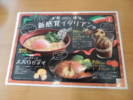 スパらッティ 「くら寿司」にて新たに展開されていた「新感覚イタリアン」のメニューの1つ「スパらッティ」です。 「スパゲッティ×らーめん」の「カルボナーラ」ということで、3種のチーズに北海道産生クリームとポルチーニ茸を使用したカルボナーラソースと7種の魚介だしを合わせた特製スープが、太麺との組み合わせになっているそうです。 1杯は現在、税別で¥370円。 2018.03.23現在 |