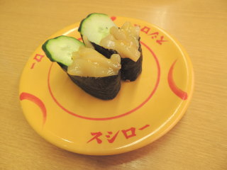 たこぼっち(水たこ昆布〆) 北海道の海でとれたもののようで、1皿は現在、税込で¥108円。 「世界の海からいいネタ100円PROJECT」の1品。 2017.12.01現在 |