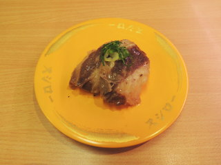 炙りメカジキ 焦がし醤油 「スシロー」の「今月の太鼓判」シリーズのうちの一品だったもの。 1皿は現在税込で¥108円。 2017.09.02現在 |