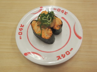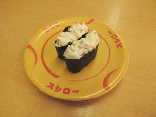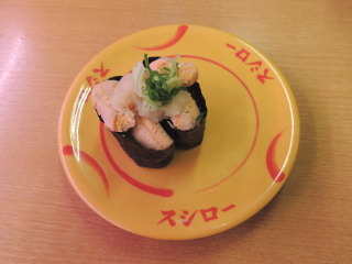 | 蟹かにマヨ軍艦 1皿は現在、税込で¥108円。 2017.10.09現在 |
