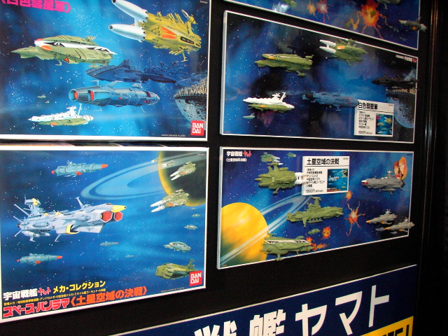 手前の戦艦はおそらく日本海軍戦艦『山城』(艦橋すぐ後ろに煙突があるため改装前でしょうか)で、左下の航空機は海上自衛隊次期固定翼哨戒機試作機XP-1、写真真ん中左の色鮮やかな宇宙艦が宇宙戦艦ヤマトに登場する『地球防衛軍ミサイル駆逐艦ゆきかぜ型(古代艦~古代守座乗)』、その右がガミラス帝国駆逐型デストロイヤー艦、そしてその上のモビルスーツらしきものは…まさかあの!?(左下へ続く) |