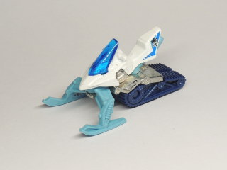 | Snow Ride (スノー・ライド) 積雪地域の交通手段として使用されたり、冬季のアウトドア・レジャーにも使用されたりする小型雪上車「スノーモービル」をベースとしてデザインされた「Snow Ride」(スノー・ライド)です。 車体キャタピラ部の裏側(下側)に、車輪が1輪付いています。 この「Snow Ride」のホットウィールは、2010年に新発売(2010 New Models 11/44)され、その後さまざまなカラーリングのバリエーションが発売されているようです。 写真のものは、2017年に発売されたバージョン(HW Snow Stormers 3/5)のもののようです。 Snow Ride Mattel J31 1186 MJ, 1, NL made in MALAYSIA 2018.02.05現在 |