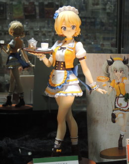 | コトブキヤショップ限定 ダージリン ココス制服ver. 笑顔パーツプレゼント 「コトブキヤ秋葉原館」店内に掲示してあった「ダージリン ココス制服ver. 笑顔パーツプレゼント」の広告ポスターです。 このフィギュアは、ファミリーレストラン「ココス」と「ガールズ&パンツァー」のコラボキャンペーンによるもので、ダージリンの着るオリジナルデザインの制服は「ココス」による徹底監修を受けているそうです。 1/7スケールで、2018年7月発売予定、価格は¥13,800円(税別)となっています。 ポスターで案内されているように、「コトブキヤショップ」限定購入特典で、表情替えパーツ「笑顔パーツ」(写真のポスターの大きい顔の表情)が1個もらえるようです。(無くなり次第終了)