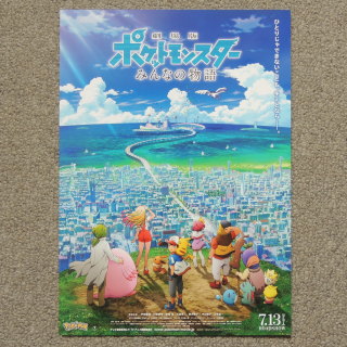 劇場版ポケットモンスター みんなの物語 2018年7月13日(金)公開予定の「劇場版ポケットモンスター みんなの物語」の案内広告チラシです。 キャッチコピーは「ひとりじゃできないことも、キミとなら―。」 主要登場人物は、サトシをはじめ、森の中で一人たたずむ謎の少女「ラルゴ」、ポケモン初心者の女子高生「リサ」、自分に自信が持てない気弱な研究家「トリト」、嘘がやめられないホラ吹き男「カガチ」、ポケモンを毛嫌いする変わり者のおばあさん「ヒスイ」となっていて、「ポケモン映画が、新たな一歩を踏み出す―。」と書かれています。 2018.06.06現在 |