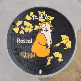 | あらいぐまラスカル(おすい) 京王線の聖蹟桜ヶ丘駅の南方にある「聖蹟桜ヶ丘オーパ(OPA)」周辺に設置されている、「あらいぐまラスカル」がデザインされた汚水用のカラーのマンホールの蓋です。 多摩市は、多摩市内に本社がある「日本アニメーション株式会社」と「多摩市と日本アニメーション株式会社との地域活性化に関する連携協定」を締結しているようで、「日本アニメーション株式会社」の代表的なキャラクターである「あらいぐまラスカル」が地域活性化の一環として、マンホールのデザインに採用されたようです。 可愛らしい笑顔を見せる「ラスカル」が中央に配され、下地にデザインされた多摩市の「市の木」とされている「イチョウ」と、「市の花」とされている「ヤマザクラ」のうちの、「イチョウ」のほうがカラーリングされたデザインとなっています。 その他、上部に「たまし」、左側に「Rascal」、見えにくいですが最下部に「おすい」の文字が配されています。 「ハローキティ」のマンホールと同様に、とても可愛らしいデザインのマンホールの蓋となっていて、設置場所は現在、多摩市の公式サイトにて公表されています。 2018.03.03現在 |