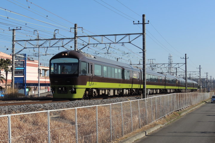 | 485系・ジョイフルトレイン“リゾートやまどり” 快速「伊豆いで湯やまどり」 東海道線(下り線)の茅ケ崎~辻堂間を茅ケ崎駅方面(小田原・熱海方面)へ行く、485系・ジョイフルトレイン“リゾートやまどり”快速「伊豆いで湯やまどり」(9833M・高崎→熱海)です。 この快速「伊豆いで湯やまどり」は、1月21日から2月12日までの間の土曜・休日に運転される予定となっているようです。 ☆快速「伊豆いで湯やまどり」の経路(往路予定:上の写真) 高崎(07:35発)→本庄(07:53-54)→深谷(08:01-01)→熊谷(08:10-10)→鴻巣(08:21-22)→北本(08:26-26)→桶川(08:31-31)→上尾(08:35-36)→大宮(08:44-45)→鶴見経由直通→横浜(10:03-04)→小田原(10:52-53)→湯河原(11:06-07)→熱海(11:13着) 2017.01.21(Sat)[10:26]現在 |