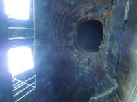 極楽寺トンネル坑門上部の「極楽洞」の文字 (←写真左) 「極楽洞」のトンネル坑門上部には、上の写真では「極」という文字が雑草で覆われて見えにくいですが、写真右側から「極楽洞」という文字が刻まれているのが確認できます。 2013.11.09現在 |