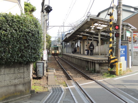 | 江ノ電 和田塚駅(EN14) 江ノ電の和田塚駅(わだづか)です。 和田塚駅は単式ホーム1面1線の駅で、駅番号は「EN14」となっています。 上の写真は、和田塚駅のすぐ東側(鎌倉方)にある「和田塚1号踏切」から和田塚駅を撮影したもので、写真右奥側が由比ヶ浜駅方面(江ノ島・藤沢方面)になります。 2013.09.01現在 |
