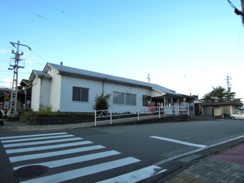 | 桜町駅の駅舎を南側から見る 写真左方向が西方向で飯田駅方面(天竜峡・豊橋方面)、右方向が東方向で伊那上郷駅方面(駒ケ根・辰野方面)になります。 桜町駅は、1947年(昭和22年)4月20日に発生した「飯田大火」にて駅の施設が焼失してしまったそうですので、現在の駅舎は初代のものではなさそうです。 駅舎の出入口には、階段とスロープ(斜路)が設置されています。 |