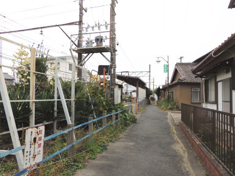 | 形原駅前から東方向を見る 写真奥方向(東方向)へ行くと、約600mほどで形原漁港に出ます。 2019.11.03現在 |
