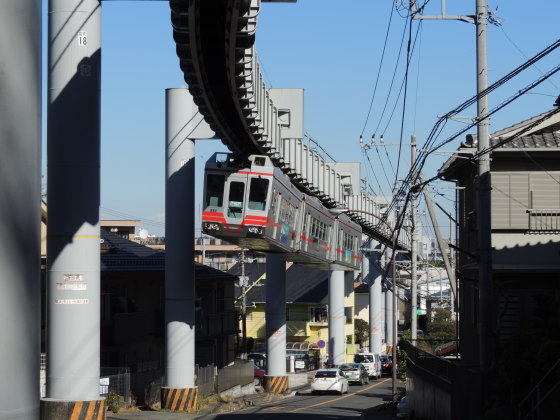 軌道は懸垂式(三菱サフェージュ式)で、旧京浜急行自動車専用道路(現在は一般市道)の上空に