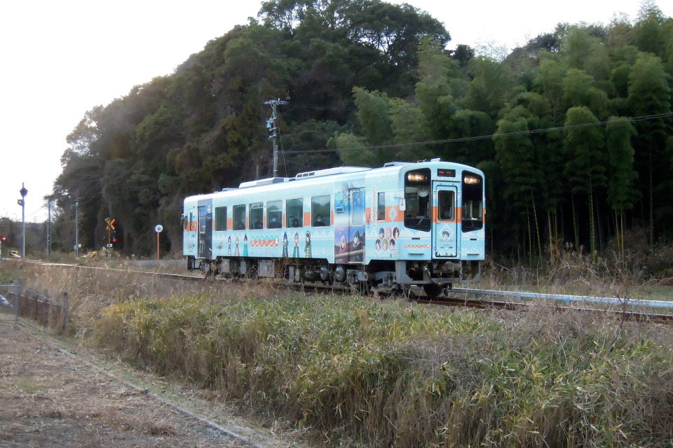 | 天竜浜名湖鉄道(天浜線) ゆるキャン△ ラッピング列車 豊岡←敷地 豊岡~敷地間を豊岡駅方面(天竜二俣・気賀方面)へ行く、「ゆるキャン△」ラッピング列車(TH2109/列車番号231・掛川 13:52発→敷地 14:28→豊岡 14:33→天竜二俣 14:38着)です。 2024年1月28日(日)[14:31]現在 ~天気は雲が多い晴れ(撮影時は曇り) |