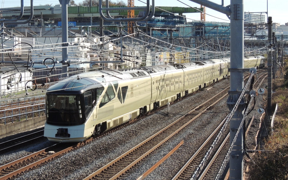 | 四季島が冬の1泊2日コースで日中に東海道線(上り旅客線)を走行 |