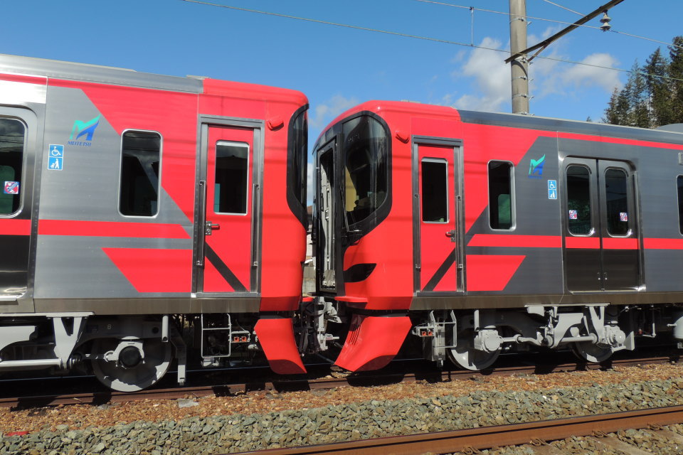 | ヨ8632と9500系20番台9521F「ク9521」の連結部分~ク9521の正面貫通扉 今回出場した9100系20番台と9500系20番台は、正面貫通扉が中央に配置されて、将来的に見込まれる連結運転時に常時通り抜けが可能な構造となっていることが大きな特徴です この正面貫通扉が、今回の出場及び甲種輸送の注目点のひとつだったと思います。 |