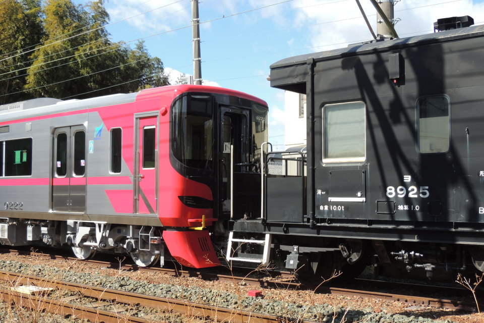 | DD200-11+ヨ8632+名鉄9500系(9521F)+9100系(9121F+9122F)+ヨ8925 日本車輌製造豊川製作所から出場し、飯田線(JR東海)の豊川駅の北東につながっている日本車輌専用線に到着した、DD200-11[愛知]+ヨ8632+名鉄9500系20番台(9521F[4両編成])+9100系20番台(9121F[2両編成]+9122F[2両編成])+ヨ8925の甲種輸送列車です。 「鈴与(すずよ)踏切」付近にて撮影したもので、写真右側に見える線路はJR飯田線の本線になります。 写真奥方向が北東方向で、JR飯田線の三河一宮駅方面(本長篠・中部天竜方面)になります。 やはり新型のピカピカの車両は見ていて綺麗で、一種の美しさと感動も感じます。 今回の甲種輸送は、DD200-11の後ろにヨ8000形が2両と名鉄の新車が8両連結されていますので、率直に「長いなあ」と感じさせます。 2025.02.19(水)[10:58]現在 |