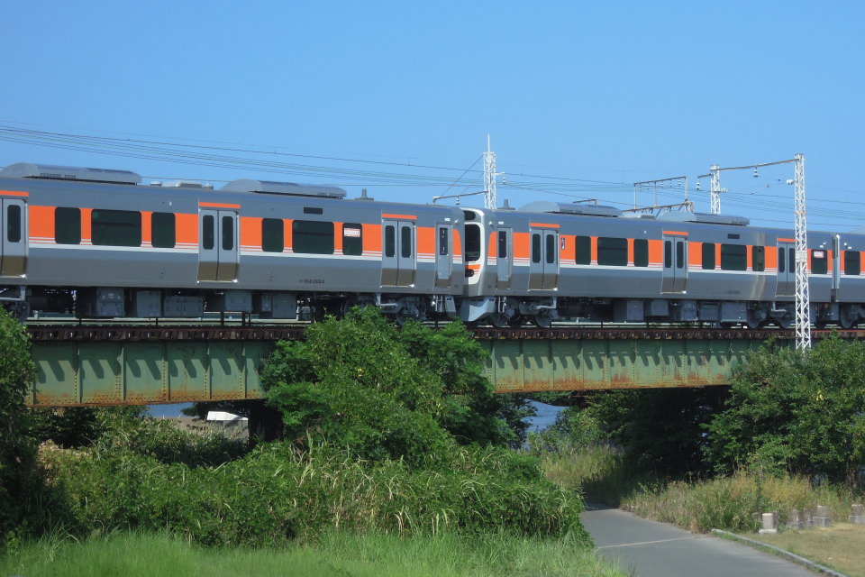 | 豊橋駅方面へ行く315系3000番台(C124編成+C123編成)出場兼試運転 飯田線(JR東海)の船町~下地間(名鉄との共有区間)を豊橋駅方面へ行く、315系3000番台(C124編成[4両編成]+C123編成[4両編成])「試運転」を、上掲の写真(豊川橋梁)を撮影した場所にて後追い撮影したものです。 ここの撮影地は、樹木や雑草があって、後追い撮影には不向きな場所となっています。 写真手前側の名古屋方(上の写真右方向)がC123編成となっていました。 2025.08.21(Thu)[09:39]現在 |