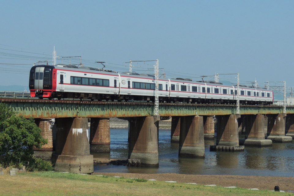 | 名鉄 2200系「特急 豊橋」行 豊橋←伊奈 名鉄名古屋本線の豊橋~伊奈間を流れる豊川に架かる豊川橋梁を走行して終点の豊橋駅方面へ行く、2200系(2208F/6両編成)「特急 豊橋」行(名鉄岐阜 08:10始発→豊橋 09:37着)です。 現時点において、日本車輌製造豊川製作所から木曜日の午前中に出場する新型車両などは、基本的にこの名鉄特急が通過した数分後にやって来ます。 私にとって名鉄の特急といえば、いまだに名鉄スカーレット1色の赤色の7000系パノラマカー(1961年~2009年/下の写真参照)の記憶が消え去りませんが、また、いつの日か、将来的に名鉄の線路上に再び7000系のような外観をしたパノラマカーが戻ってくることはあるのでしょうか。 2025.08.21(Thu)[09:35]現在 |