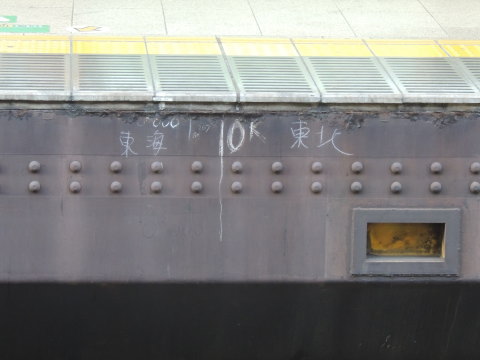 | 8番線と9番線にある「0キロポスト」を示すものと思われるマーク いずれの写真も、東京駅の9番ホーム中ほど(東海道線・南行下り)にて撮影したものです。 8番ホーム(上野東京ライン・北行下り)の縁の垂直面部分には、手書きと思われる「0キロポスト」を示すマークが白い文字で「東海 0k 東北」と書かれていました。 また、9番線(東海道線・南行下り)の線路道床部には、「0キロポスト」を示していると思われる「0-0-0」の文字が書かれていました。 2016.12.02現在 |