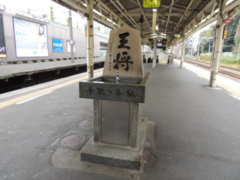 千駄ケ谷駅のホーム上にある「将棋の駒」のオブジェ 千駄ケ谷駅のホーム上にある水飲み場には、「将棋の駒」のオブジェが設置されています。 これは、千駄ケ谷駅が「日本将棋連盟」本部所在地(東京将棋会館:当駅南方約500m)から近い駅であることに因み、1980年(昭和55年)12月に「日本将棋連盟」から寄贈されて設置されたものなのだそうです。 (詳細「Wikipedia」参照) 「将棋の駒」には、「王将 十五世名人 大山康晴書」とありました。 2014.11.24現在 |