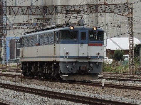 | EF65-1102 高島線(貨物線)の桜木町~鶴見間にある東高島駅の構内にて、機回し準備中の「EF65-1102」単機です。 東高島駅の北東側(鶴見・新鶴見信号場方)にある「会社道踏切」から撮影したもので、この後、11:30分頃から東高島駅の北東側約300mあたりのところにある「千鳥橋踏切」付近まで機回しのため移動し、そこからまた東高島駅方面へと引き返し、その後、11:51分頃に東高島駅を出発して鶴見方面へ向かい、所属区の田端運転所まで運転されたようです。 なお、この「EF65-1102」は、前日に相模貨物工臨(工9894レ・チキ4B返空・相模貨物→東高島)の運用に充当されています。 2014.11.28[11:11]現在 |