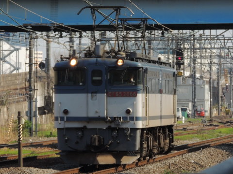 | EF65-2066 武蔵野南線(貨物線)を新鶴見信号場方面へ行く、「EF65-2066」単機(単2491レ・川崎貨物→新鶴見信号場)です。 新川崎駅の南方約1kmのところにある「小倉跨線橋」(小倉陸橋)付近にて撮影。 2014.04.09現在 |