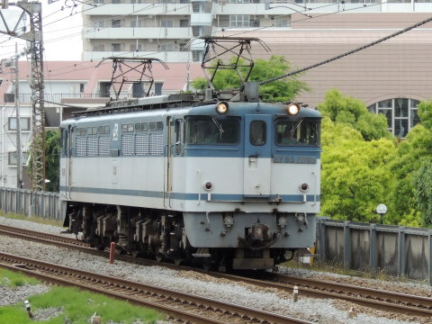 EF65-2074 東海道貨物線の辻堂~藤沢間を藤沢駅方面(横浜羽沢方面)へ行く「EF65-2074」単機です。 藤沢駅の西方約1kmのところにある「鵠沼道踏切」にて撮影。 2013.05.27現在 |