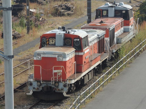 神奈川臨海鉄道 DD603・DD5519 神奈川臨海鉄道の機関車が所属する車両基地「塩浜機関区」(川崎貨物駅構内)の車庫に留置されていた神奈川臨海鉄道の「DD603」(写真左)と「DD5519」(写真右)です。 「DD603」 ・塩浜機関区所属 ・製造…日本車輌製造(豊川製作所 2014年3月1日出場) 「DD5519」 ・塩浜機関区所属 ・製造…富士重工(1994年1月24日入籍) 2015.04.02現在 |