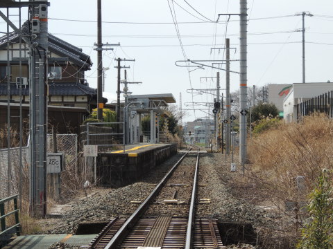 東新町駅を北西側から見る 東新町駅の様子を北西側から撮影したものです。 写真右方向が西方向で、新城駅方面(豊川・豊橋方面)になります。 2017.03.05現在 |