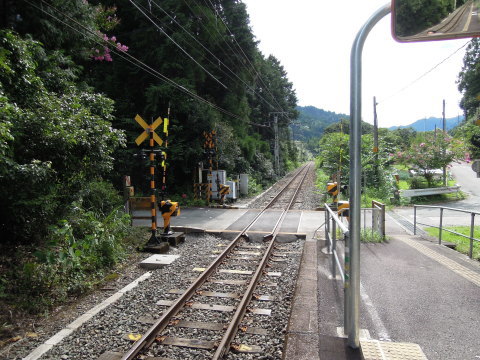 柿平駅 柿平駅のすぐ西側にある「柿平踏切」から、三河川合駅方面(中部天竜・飯田方面)を撮影したものです。 写真左側が北の方角になります。 2012.09.02現在 |