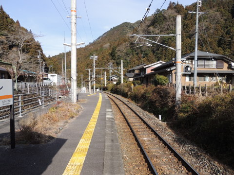 | ホーム上から向市場駅方面を望む ホーム上の駅名標がある場所あたりから、向市場駅方面(水窪・飯田方面)を撮影したものです。 2013.01.05現在 |