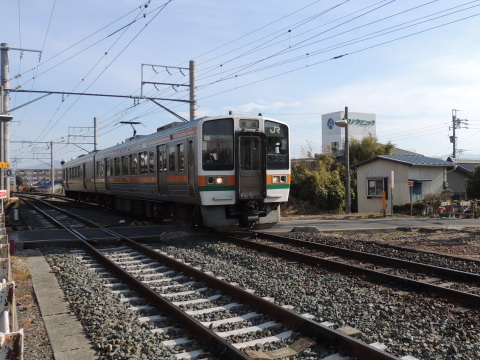 | 飯田線 313系「快速 豊橋」行 愛知県豊川市内の豊川~牛久保間を牛久保駅方面(豊橋方面)へ行く313系(2両編成)「快速 豊橋」行です。 牛久保駅の北東約400mのところにある「天王(てんのう)踏切」にて撮影。 2013.01.13現在 |