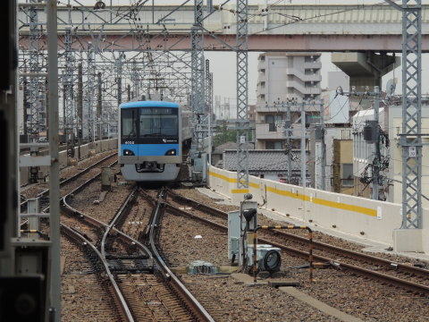 常磐緩行線(各駅停車) 小田急 4000形(下り) 北千住駅方面(西日暮里・大手町方面)から綾瀬駅(2・3番線)に接近中の、常磐線各駅停車(北千住~綾瀬)の小田急4000形(4052編成)「各駅停車 綾瀬」行(B1095E・代々木上原始発)です。 綾瀬駅の2番線ホーム西端側(北千住・大手町寄り)にて撮影したもので、写真奥のほうには首都高速6号三郷線が見えています。 2015.05.06現在 |