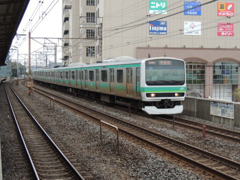 | E531系(上り) 日暮里駅方面(北千住・松戸方面)から終点の上野駅(10番線)に進入中の、E531系「普通 上野」行(386M・勝田始発)です。 上野駅の11番線ホーム中ほどから撮影。 2015.11.24現在 |