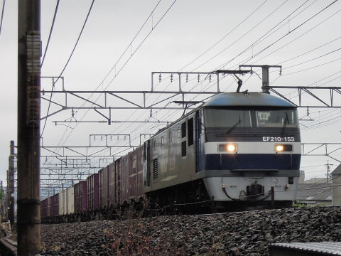 EF210-153+コキ 東海道本線の西小坂井~豊橋間を豊橋駅方面(浜松・静岡方面)へ行く「EF210-153」+コキです。 天気は雨模様で、豊橋駅西方の通称「開かずの踏切(豊田踏切)」付近にて撮影したもので、写真右手前側が豊橋駅になります。 2012.06.16現在 |