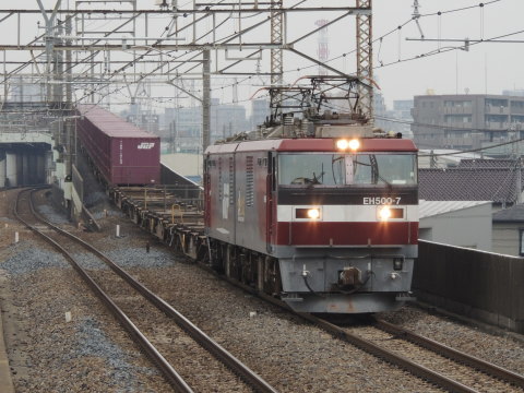 EH500-51+コキ 東海道貨物線(下り線)の東戸塚~戸塚間を戸塚駅方面(大船・平塚方面)へ行く、「EH500-51」+コキ(2079レ[EH500仙台 A151]・新座貨物ターミナル→相模貨物)です。 「EH500-51」(量産機3次形) ・仙台総合鉄道部所属(JR貨物) ・製造…東芝府中事業所(2007年5月17日出場) 2016.05.12[14:49]現在 |