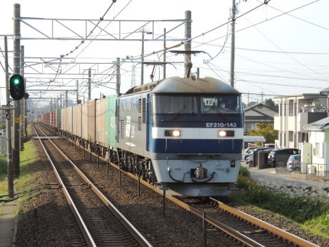| EF210-142+コキ(1070レ) 逢妻駅(上り) 大府駅方面(笠寺・名古屋方面)から逢妻駅に接近中(2番線通過)の、EF210-142+コキ(1070レ[EF210新鶴見 A227]・幡生操車場→東京貨物ターミナル)です。 逢妻駅の2番ホーム中ほどやや西側(大府・名古屋寄り)にて撮影。 2016.03.27(Sun)[13:11]現在 |