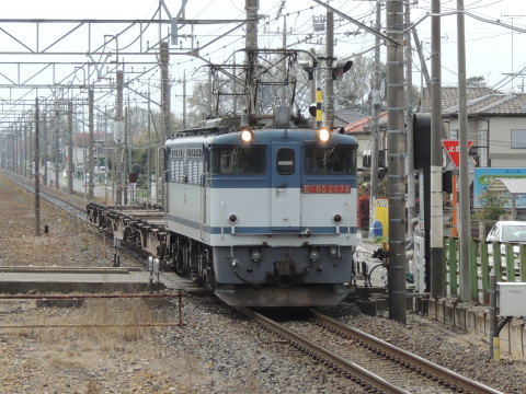 新白岡駅(下り) EF65-2065+コキ(3083レ) (←写真左) 新白岡駅の2番線を通過して久喜駅方面(小山・宇都宮方面)へ行く、「EF65-2065」+コキ(3083レ[EF65新鶴見 A28]・新鶴見信号場→黒磯)です。 新白岡駅の1番ホームの中ほどから撮影。 2015.04.09[09:40]現在 |