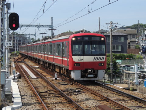 | 京急 1000形(上り) 京急長沢駅方面(三崎口方面)からYRP野比駅(2番線)に接近中の、1000形(1120編成・ステンレス車・8次車)「快特 青砥」行(925SH・三崎口始発)です。 YRP野比駅の1番ホーム南西端側(京急長沢・三崎口寄り)にて撮影。 なお、YRP野比駅から京急長沢駅までの区間は単線区間となっています。 2016.08.09現在 |
