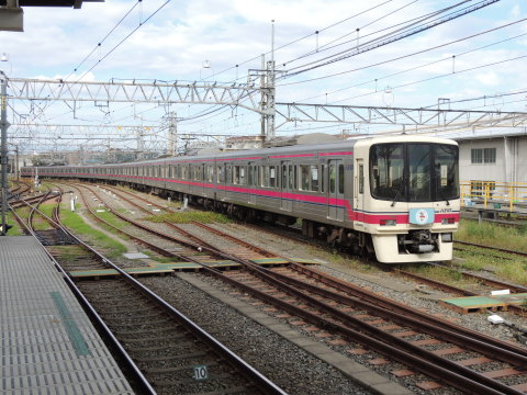 | 京王電鉄 8000系(上り) 百草園駅方面(高幡不動・高尾方面)から聖蹟桜ヶ丘駅(2番線)に接近中の、8000系(8704F+8804F・6+4両編成)「準特急 新宿」行(高尾山口始発)です。 聖蹟桜ヶ丘駅の1番ホーム西端側(百草園・高幡不動寄り)にて撮影。 2016.09.25現在 |
