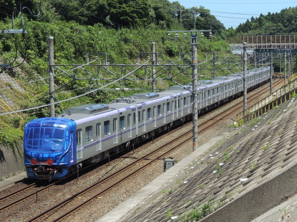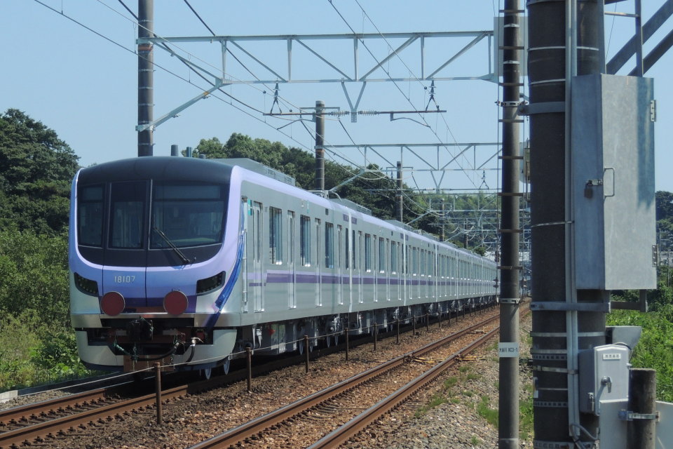 | EF210-129+東京メトロ半蔵門線 18000系(18103F) 2021年7月17日(土) 12時59分頃 新所原→鷲津 東海道本線上り線(JR東海)の新所原~鷲津間を鷲津駅方面(浜松・静岡方面)へ行く、EF210-129+東京メトロ半蔵門線 18000系(18103編成・10両)の甲種輸送列車(8862レ)です。 通過時のスピードはとてもゆっくりでした。 今回甲種輸送されたのは、日立製作所笠戸事業所(山口県下松市)にて新造された、東京メトロ(東京地下鉄)半蔵門線用の新型の通勤形電車18000系「18103編成」(第3編成・10両)で、2021年7月16日(金)に下松駅を出発して甲種輸送されたようです。 18000系は、半蔵門線にて約40年間活躍している8000系に代わる新型車両で、19編成の計190両を2025年度までに導入予定となっていて、2021年8月から順次営業運転を開始する予定のようです。 車内空間は半蔵門線の路線カラーの色彩に同調され、車内にセキュリティカメラの設置、全車両にフリースペースの設置、座席幅の拡大、車両の床面高さを低くして車両とホームの段差を低減すること(8000系より60mm低い1140mm)などが図られているそうです。 また、万一脱線した場合にも自動で列車を停止させる脱線検知装置が搭載されたり、総合指令所などから走行車両の機器類の状態をモニタリングするシステムが導入されているそうです。 下の写真は、甲種輸送される18103編成の最後尾側を後追い撮影したものですが、先頭車両前部はブルーシートで覆われて養生されていましたので、残念ながら本来の姿を見ることはできませんでした。 |