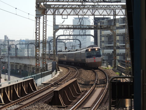 小田急 30000形 EXE(エクセ) 特急「はこね27号」 (←写真左) 富水駅方面(新松田・秦野方面)から螢田駅に進入中(1番線通過)の、30000形「EXE(エクセ)」特急「はこね27号」(新宿 13:10発→箱根湯本 14:39着)です。 螢田駅の1番ホームと2番ホームを連絡する跨線橋から撮影。 2016.07.30(Sat)現在[14:17] |