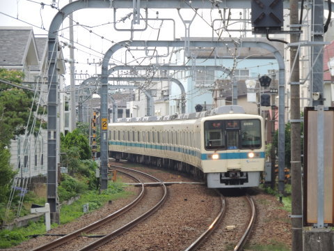 | 小田急 8000形(上り) 鶴間駅方面(湘南台・藤沢方面)から南林間駅(2番線)に接近中の、8000形(8251×6)「各停 町田」行です。 南林間駅の1番ホーム南端側(鶴間・藤沢寄り)にて撮影。 2016.06.04現在 |