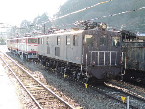 E31形「E34」 (←写真左) 千頭駅の構内に留置されていた、E31形電気機関車「E34」です。 2013.12.31現在 |